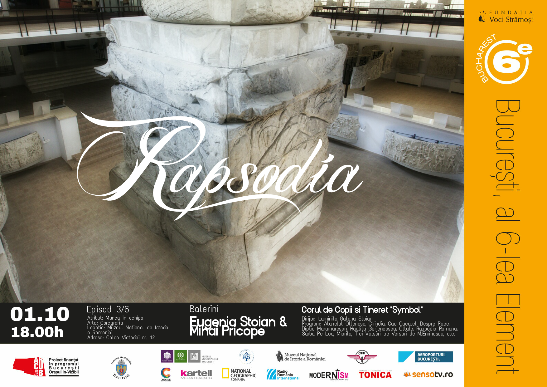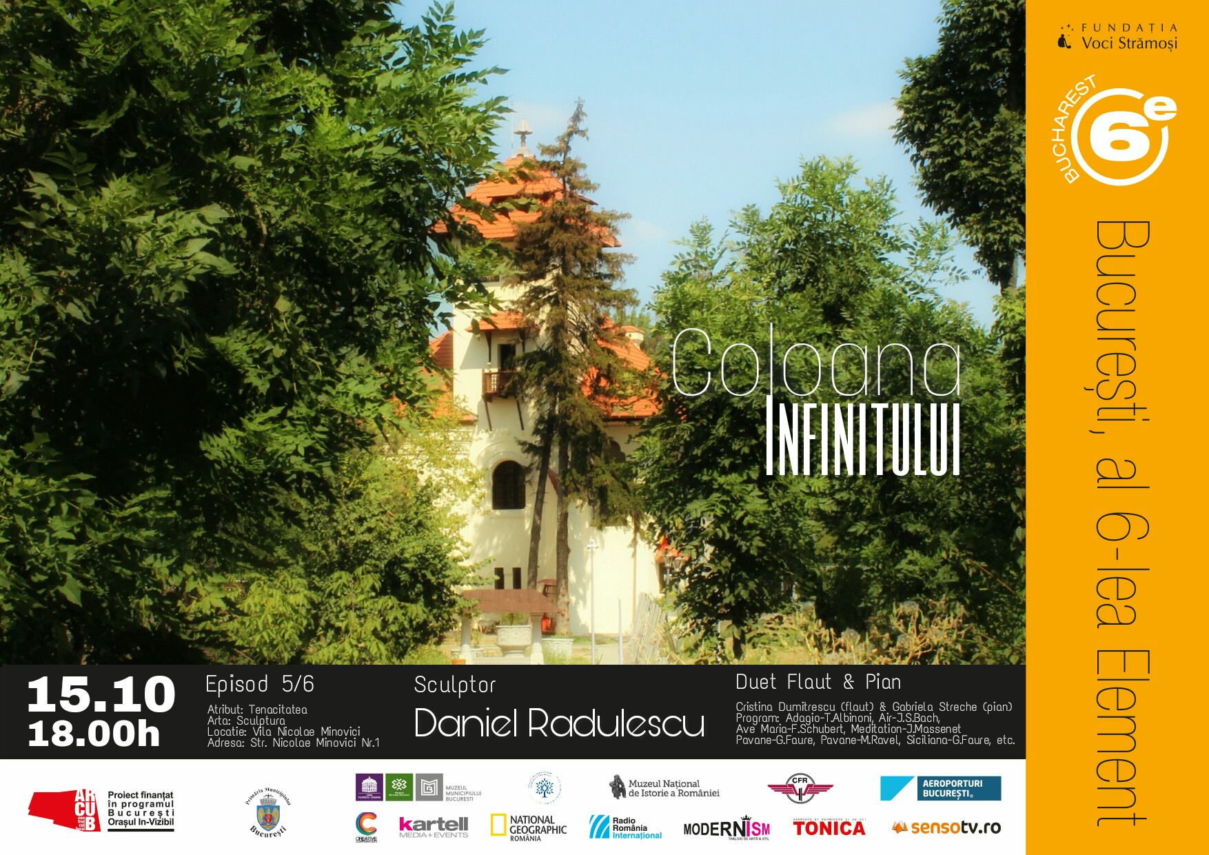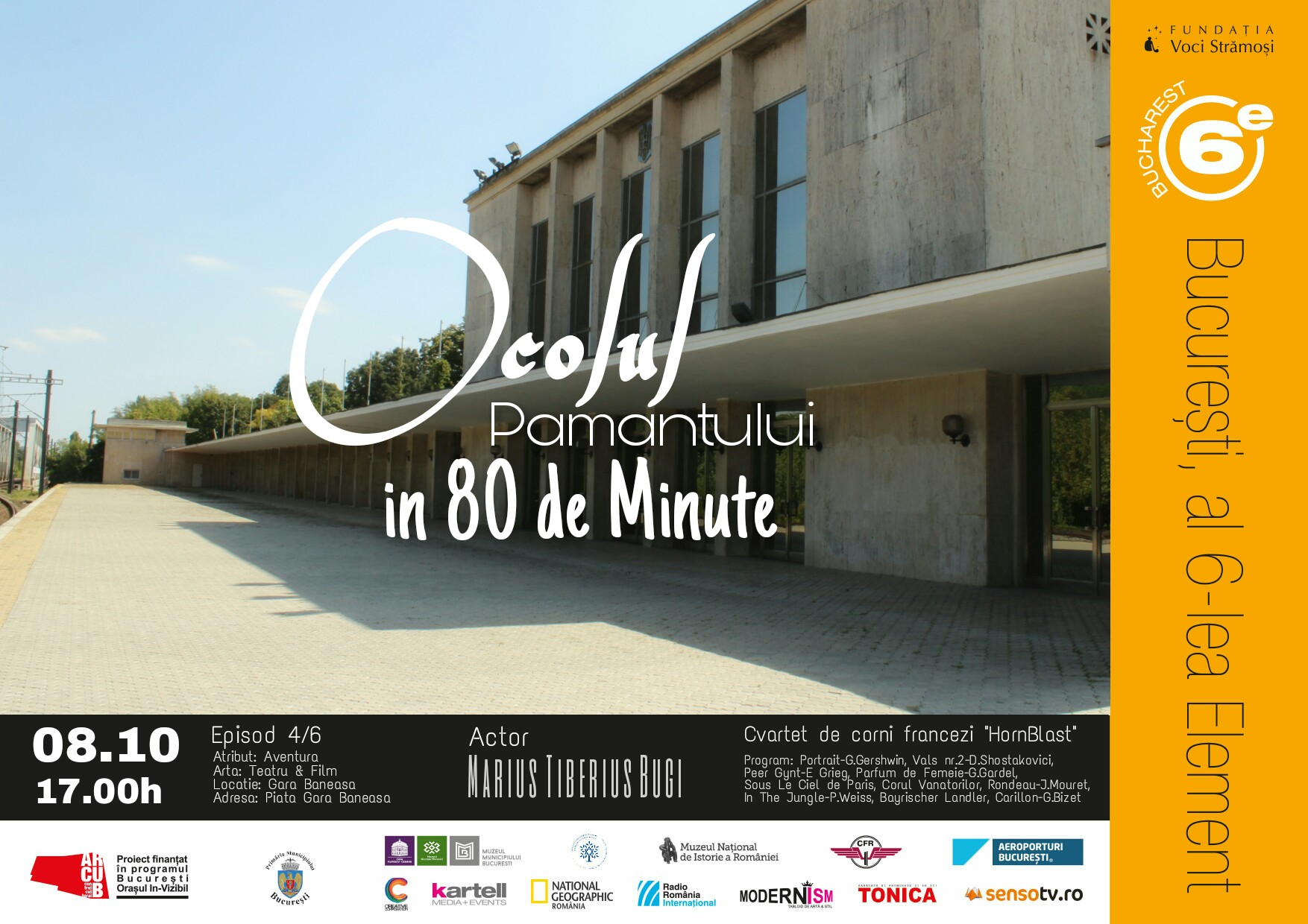 – 6 Date: (24, 25 sep, 1, 8, 15, 29 oct): Casa Cesianu (gradina), Templul Coral, Muzeul National de Istorie a Romaniei (Columna lui Traian), Gara Baneasa (peronul regal), Vila Minovici (galeria de arta subterana), Aeroport Baneasa (pista)